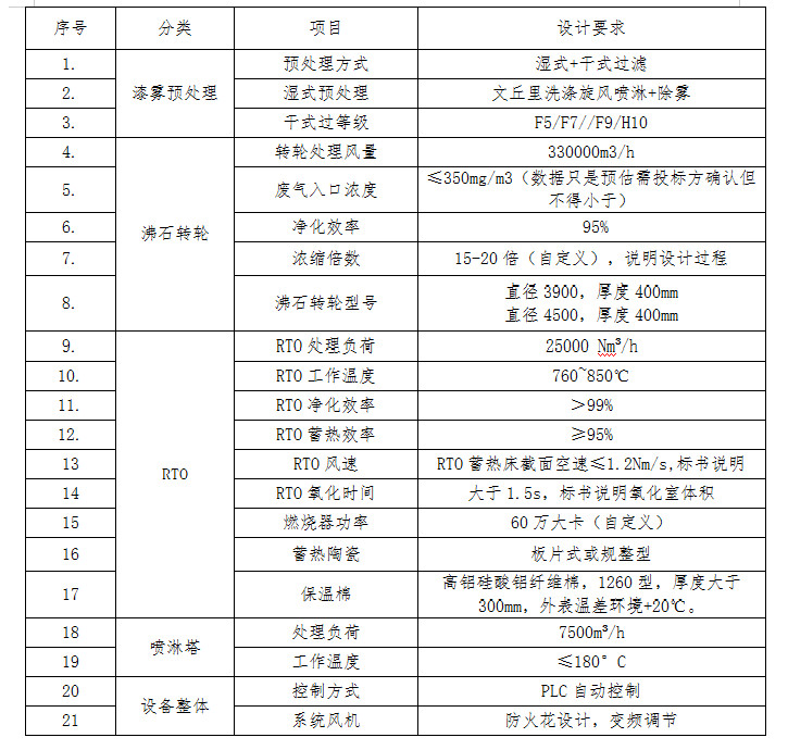 1、廢氣-2套濕式預(yù)處理系統(tǒng)+2套干式過(guò)濾系統(tǒng)+2套沸石轉(zhuǎn)輪+1套R(shí)TO系統(tǒng)+1套回風(fēng)系統(tǒng)。