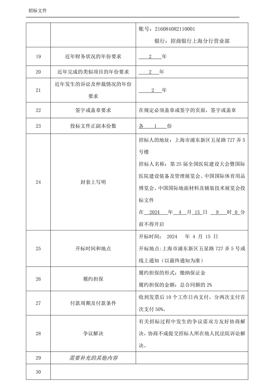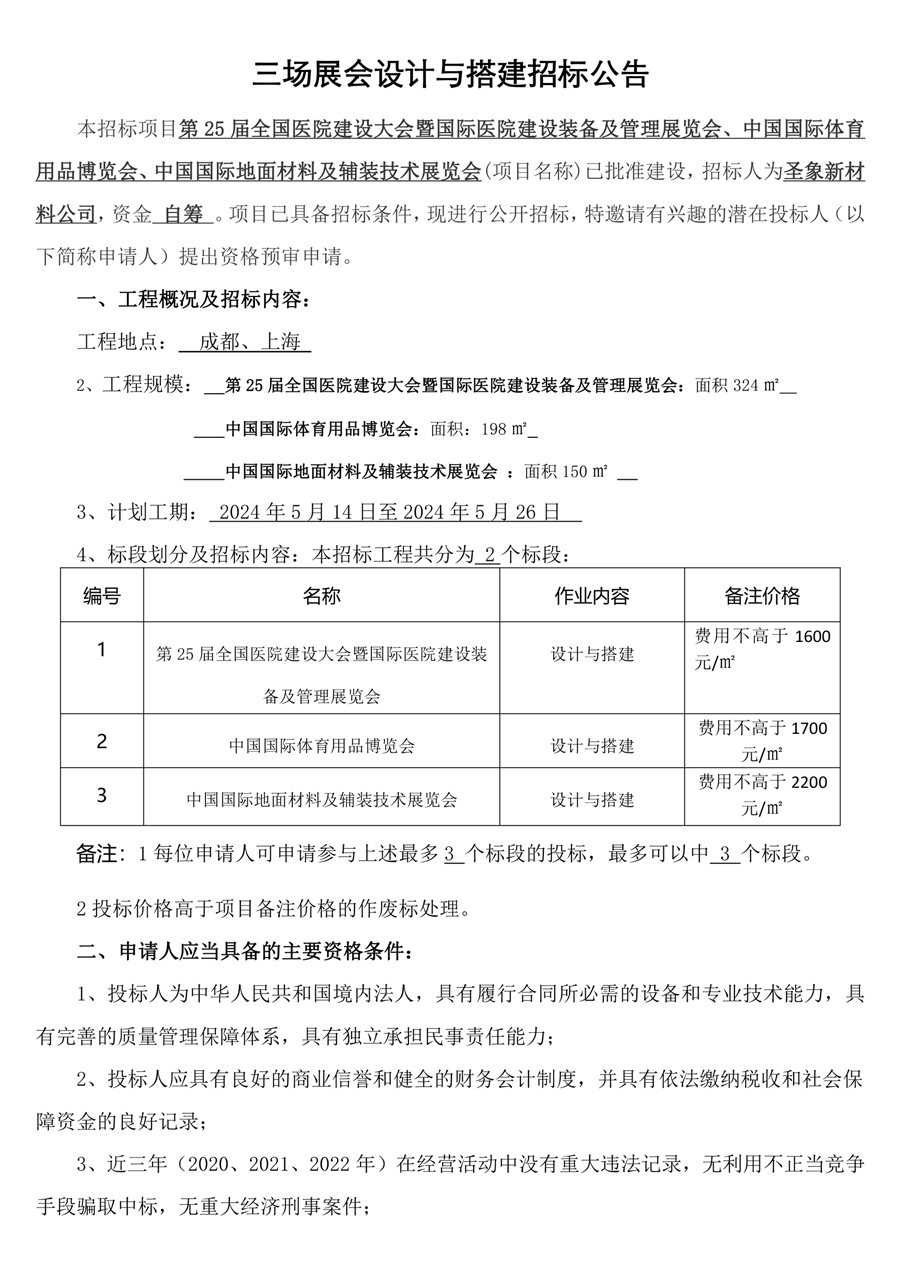 第25屆全國(guó)醫(yī)院建設(shè)大會(huì)暨國(guó)際醫(yī)院建設(shè)裝備及管理展覽會(huì)、中國(guó)國(guó)際體育用品博覽會(huì)、中國(guó)國(guó)際地面材料及輔裝技術(shù)展覽會(huì) 招標(biāo)文件