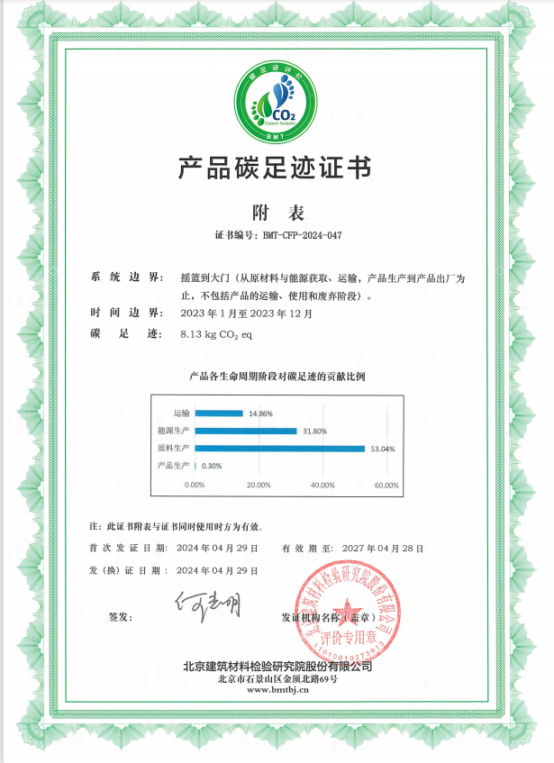圣象地板(句容)有限公司統(tǒng)計期2023年1月1日至2023年12月31日,系統(tǒng)邊界:搖籃到大門,多層實木復合地板產(chǎn)品各過程對碳足跡的貢獻比例:在系統(tǒng)邊界內,原材料生產(chǎn)對全球變暖環(huán)境影響的貢獻最大,約為53.04%,其次是能源生產(chǎn)對全球變暖環(huán)境影響貢獻占比約為31.80%,運輸對全球變暖環(huán)境影響貢獻占比約為14.86%,產(chǎn)品生產(chǎn)對全球變暖環(huán)境影響的貢獻占比最小,占比約為0.30%。