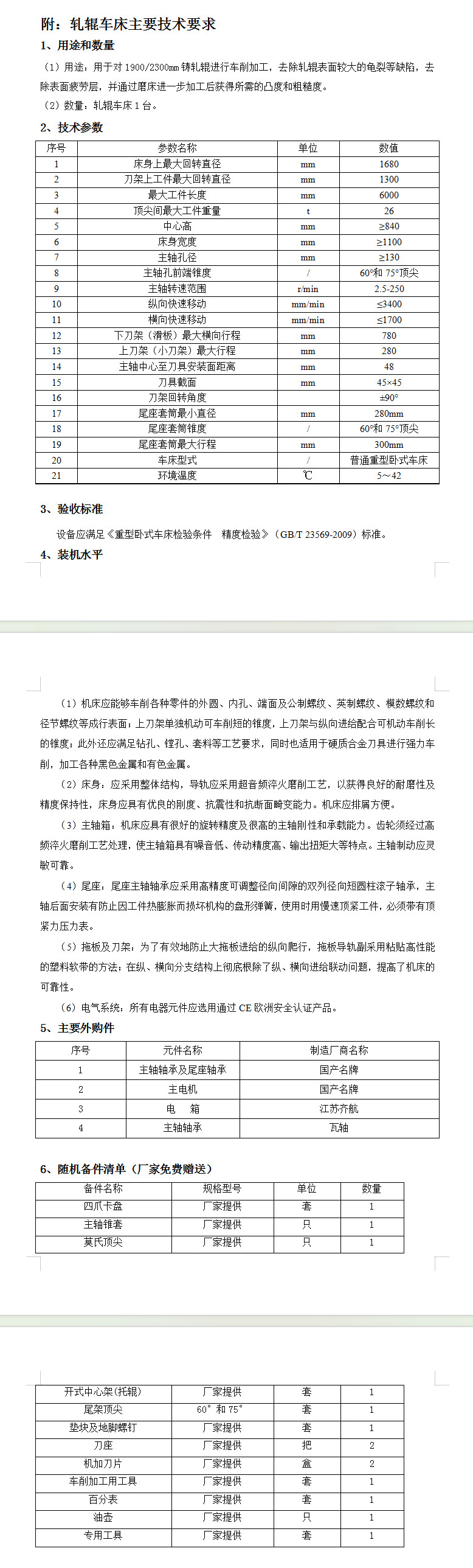 2、工程(項目)規(guī)模:合同范圍包括軋輥車床裝置1臺,供貨范圍為車床全套設(shè)備、各工藝系統(tǒng)、附屬設(shè)施及輔材,以及滿足設(shè)備正常生產(chǎn)運行所包含的其他全部內(nèi)容,包含但不限于:設(shè)計、制造、包裝、裝卸、運輸、保險、安裝調(diào)試、備品備件、技術(shù)指導、員工培訓、質(zhì)量保修等內(nèi)容。(技術(shù)標準和要求詳見招標文件)。乙方在合同簽訂后15日內(nèi),需向甲方及設(shè)計院提供標的物基礎(chǔ)圖及相關(guān)資料。