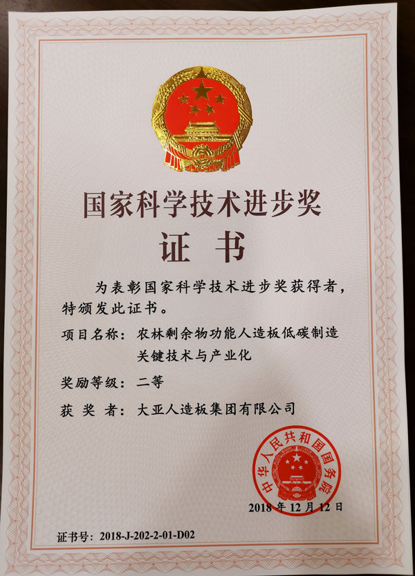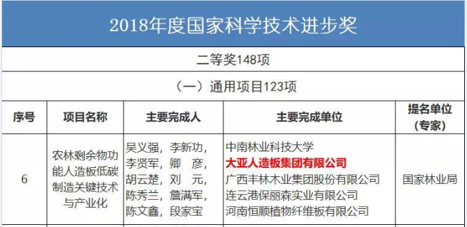 【喜報】大亞人造板集團獲國家科學技術進步二等獎