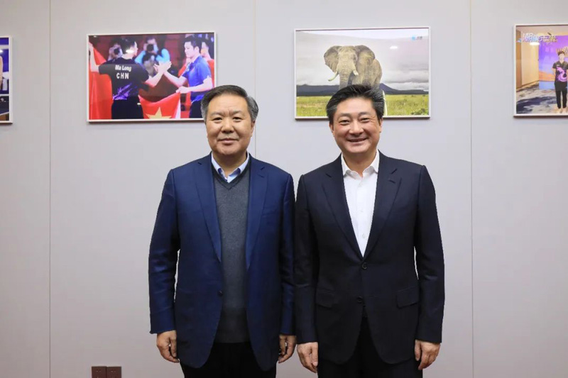 在圣象集團董事長陳建軍的陪同下,南京體育學院黨委書記朱傳耿一行參觀了大亞集團黨建館、企業館、大亞濾材公司、圣象新材料運動展廳、圣象康逸三層工廠展廳,并一同參與了圣象組織的乒乓互動活動。